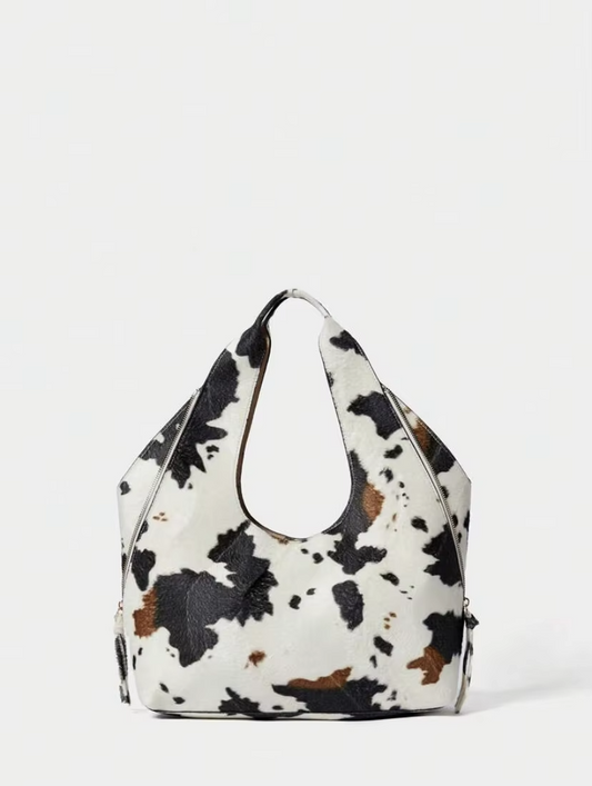 Stylowa torebka w krowi wzór - Przestronna codzienna torebka dla kobiet - Trwały materiał poliestrowy