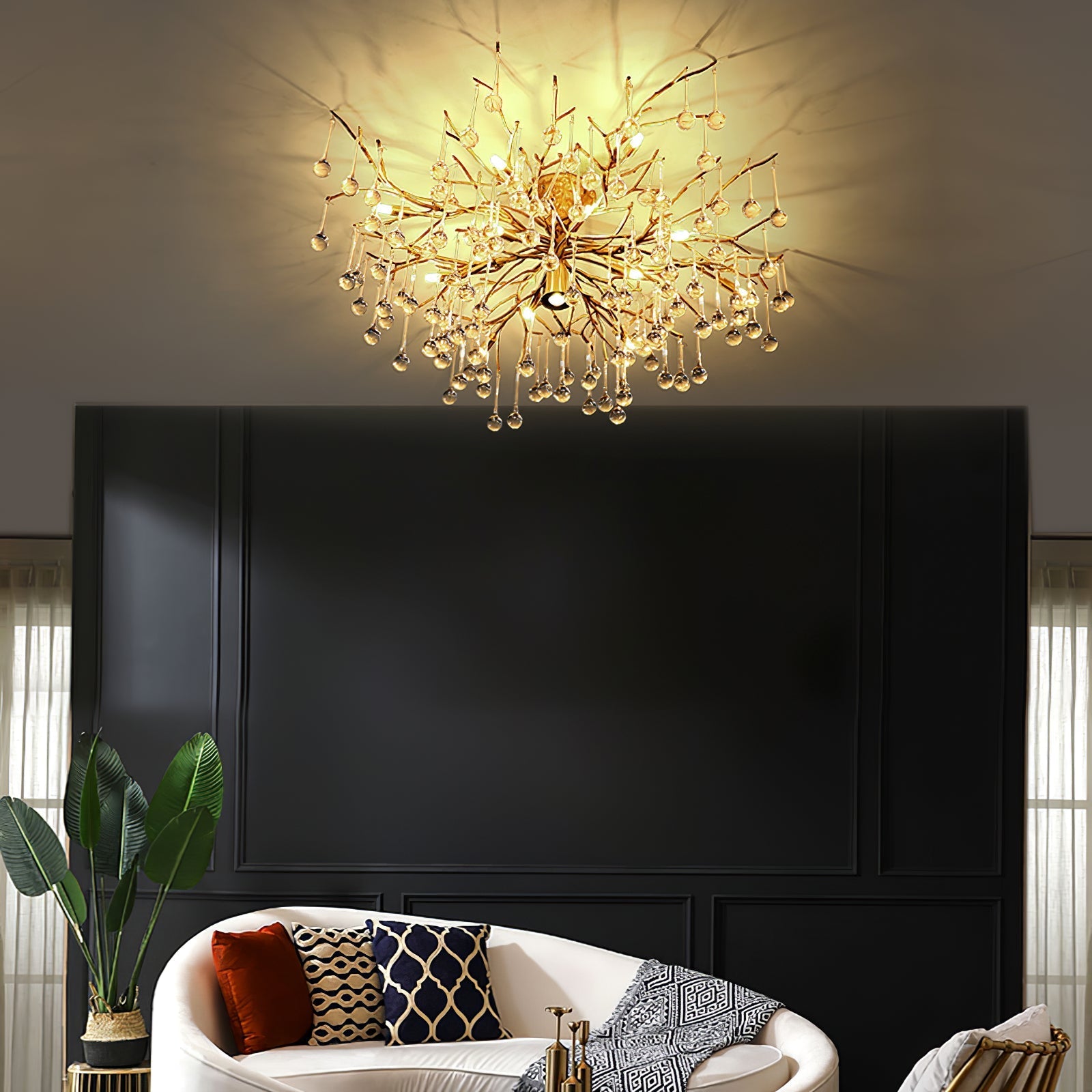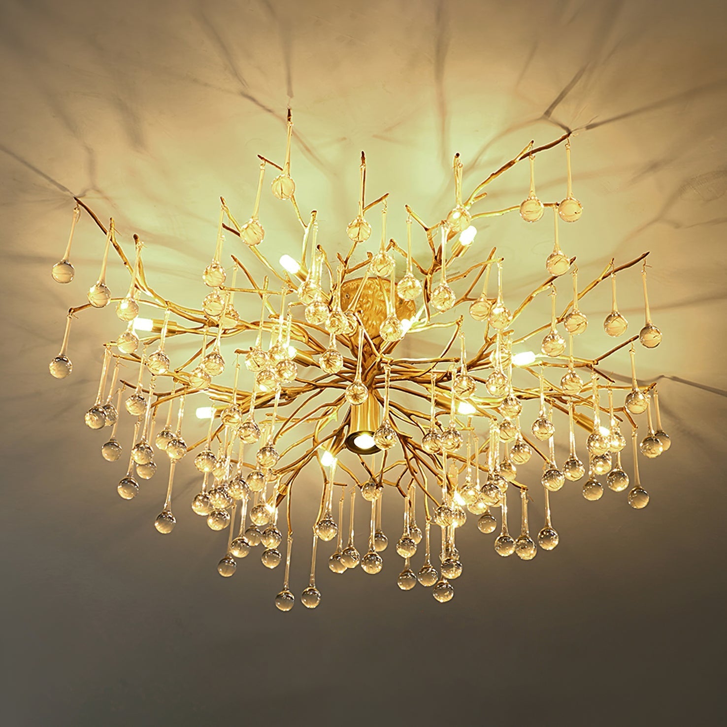 The DivinoAura ceiling light stands out with its elegant design and refined finish. Not only is the lamp a stunning feature when lit, but the glass droplet pendants create a beautiful play of light and shadow. Perfect for your living room, this lamp creates a radiant effect and adds a luxurious touch to your space.