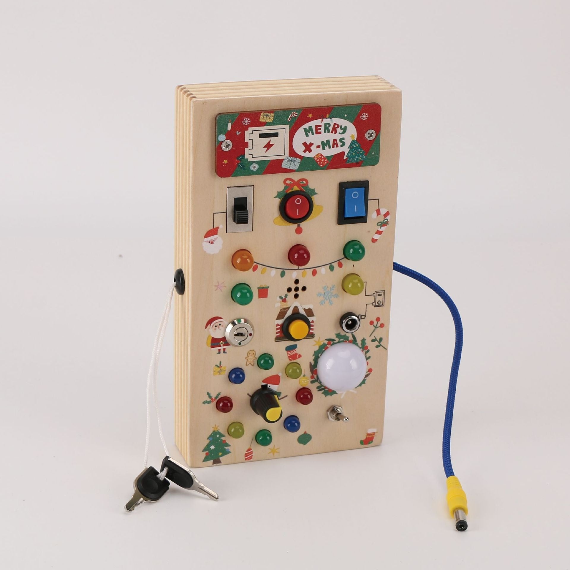 Introduce your toddler to the joy of learning with the Interactive LED Game Board. This Montessori-inspired wooden toy is designed for children aged 3 and up, combining vibrant LED lights with easy-to-use switches to foster an understanding of cause and effect in a playful manner.
